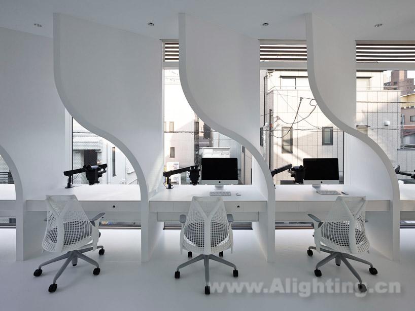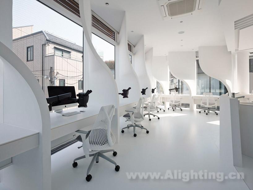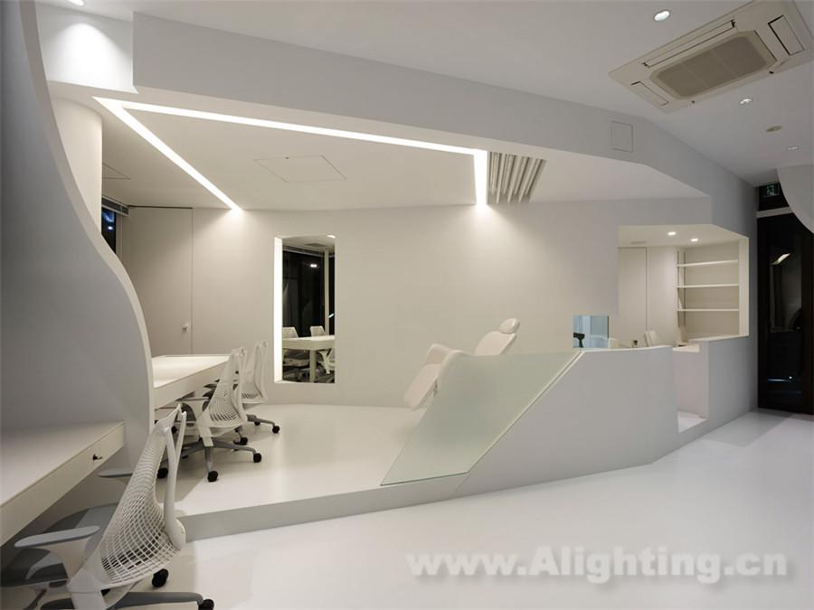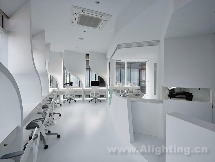 摘要:本案例為“ippin dental laboratory”,是東京首個推行定制服務的牙科診所。建築位於繁華時髦的東京都港區,原本的用途是商業店鋪,建築立面上安裝了巨大的玻璃幕牆。 takato tamagami architectural design設計的這個單層改造項目為室內空間提供了必要的私密性,遮擋並減輕了玻璃幕牆中透出的強烈陽光。設計師利用隔牆來實現這一效果——在每個進行精密工作的工作台中,頂部牆面都被彎曲,既遮擋了陽光直射,又能阻擋來自其它相鄰建築的視線乾擾。室內佈局同時考慮到了幕後準備空間和牙醫與病人直接接觸的公共區域。為了節省預算,許多建造方式都經過測試驗證。最後,設計師和業主決定啟用一家手工藝術品製造商來進行施工。其中的照明設計值得鑑賞!
